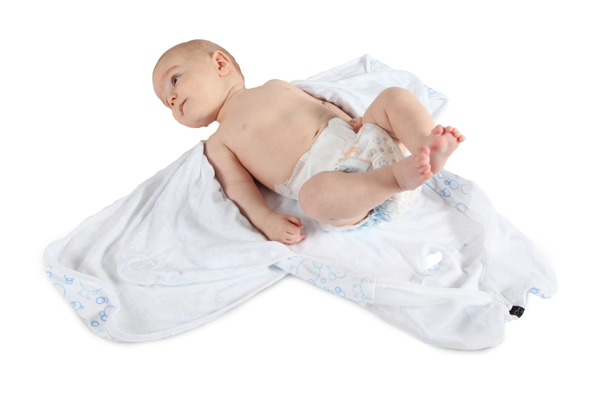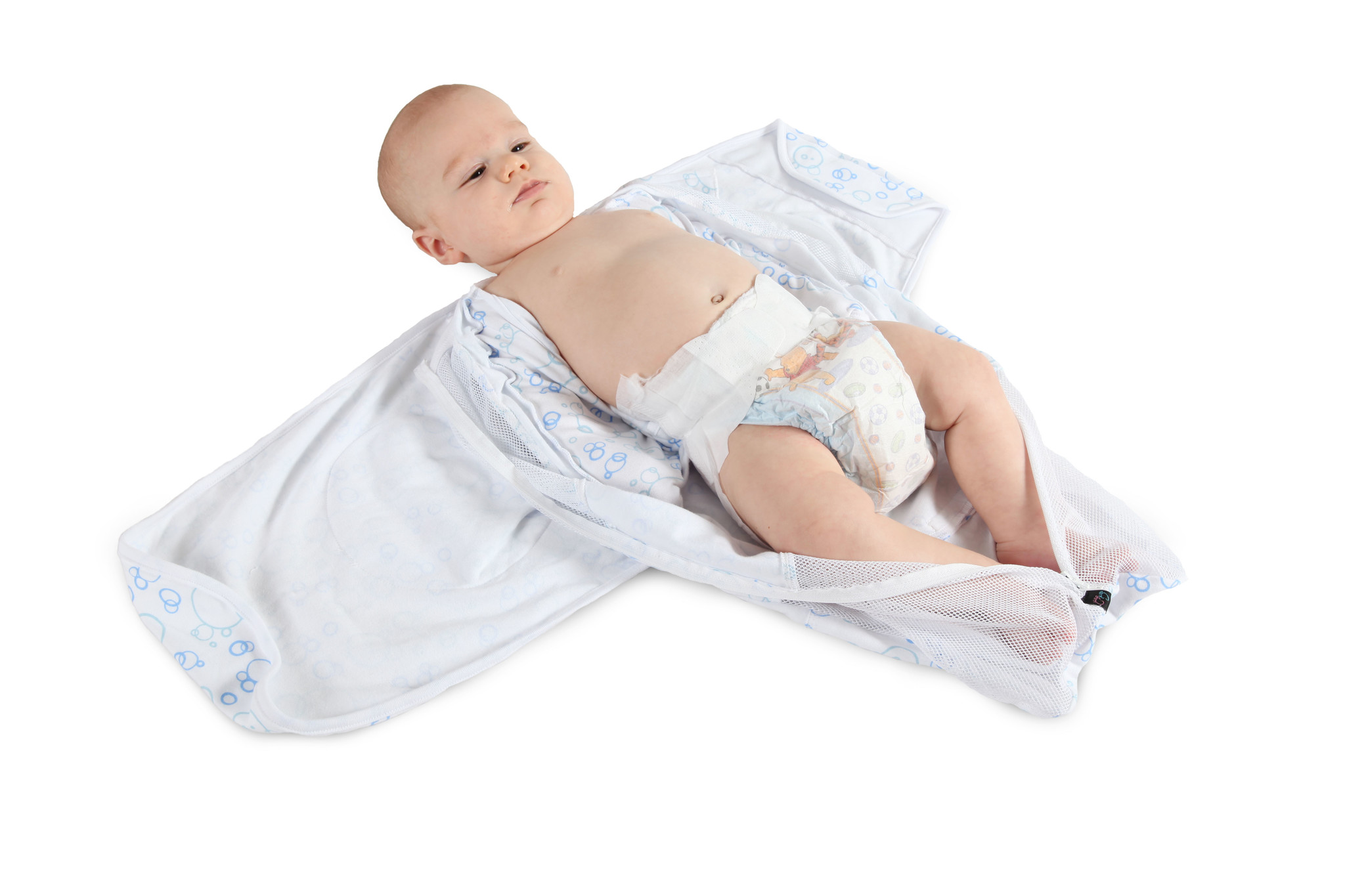 Geen probleem, de dreamswaddle heeft een 2-weg ritssluiting en is dus in de nacht eenvoudig aan de onderkant te openen om een luier te verschonen. Dit lukt je zelfs zonder je kleintje wakker te maken!